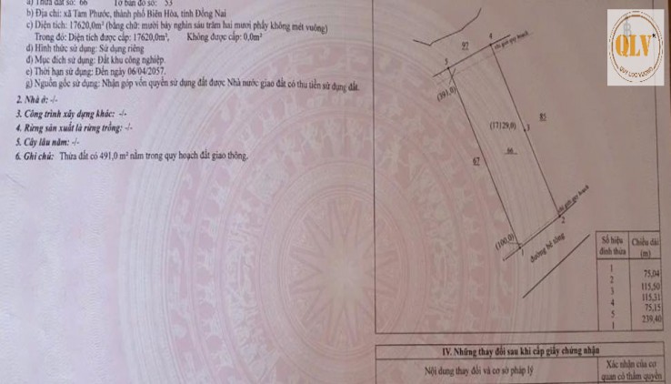 BÁN ĐẤT – CCN DỐC 47, TAM PHƯỚC, BIÊN HÒA, ĐN – 52.122m²