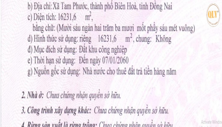 Loại đất: Đất cụm công nghiệp, đã trả tiền sử dụng đất một lần, thời hạn đến năm 2060