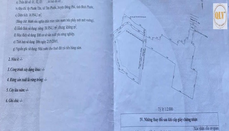 BÁN ĐẤT SẢN XUẤT – TÂN PHƯỚC, ĐỒNG PHÚ, BP – 16.954m²