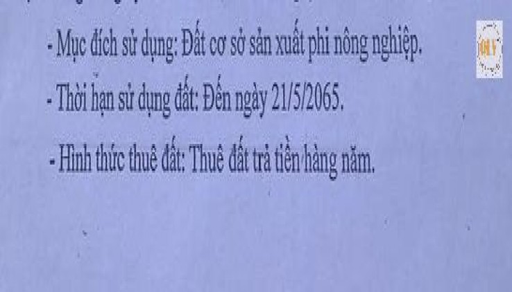 Loại đất: Đất SKC – trả tiền hàng năm đến năm 2065