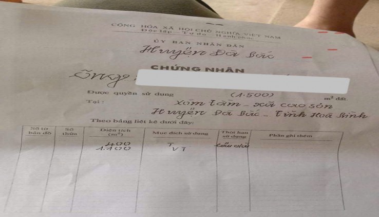 -Hiện tại trong sổ là 1500m, thực tế là 1ha, có 400m tc 1100m đất vườn còn lại cây lâu năm và rsx.