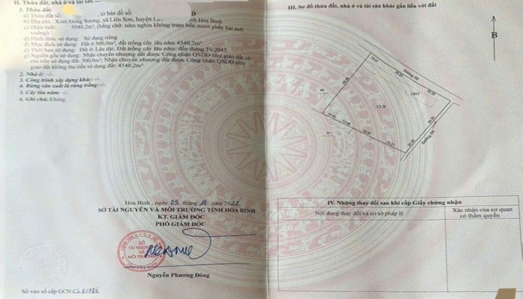 - Diện tích 5040m, có hẳn 500m đất ở dàn đều theo mặt tiền 80m, sổ vuông như bao diêm
