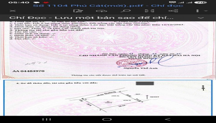 • Diện tích: 1104m² – có 400m² đất ở
