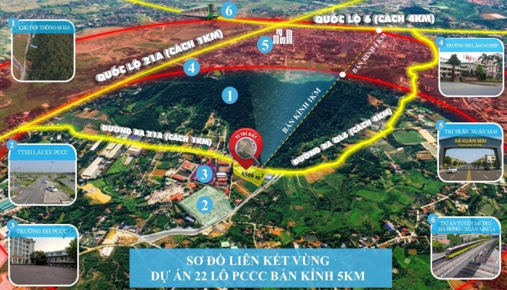 Vị trí đăc địa: Gần ngay canh trường ĐHPCCC, gần trường thi sát hạch lái xe, , được bao quanh bởi rừng thông 86ha xanh mát quanh năm.