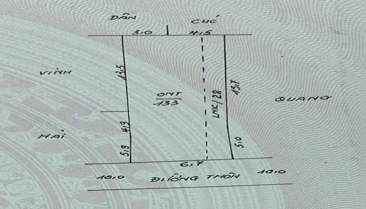 -Mặt tiền 6,7m, hậu 7,5m, Đường trước đất rộng 10m, ô tô tránh nhau thoải mái
