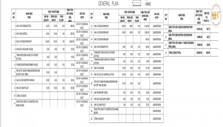 Tổng diện tích xây dựng: 9.344m² (gồm 2 nhà xưởng)
